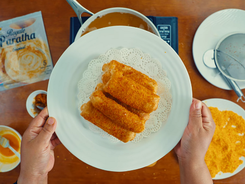 Paratha risoles stuffed with seasoned fillings, offering elegant bite-sized appetizers perfect for parties, events, or entertaining anywhere.